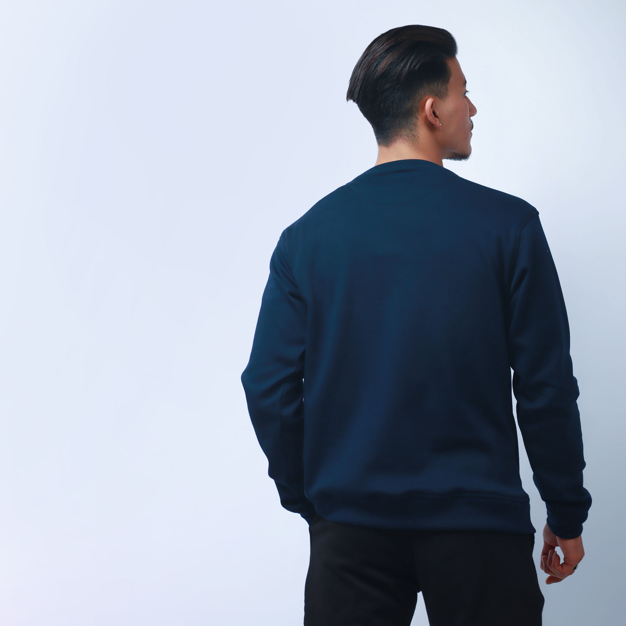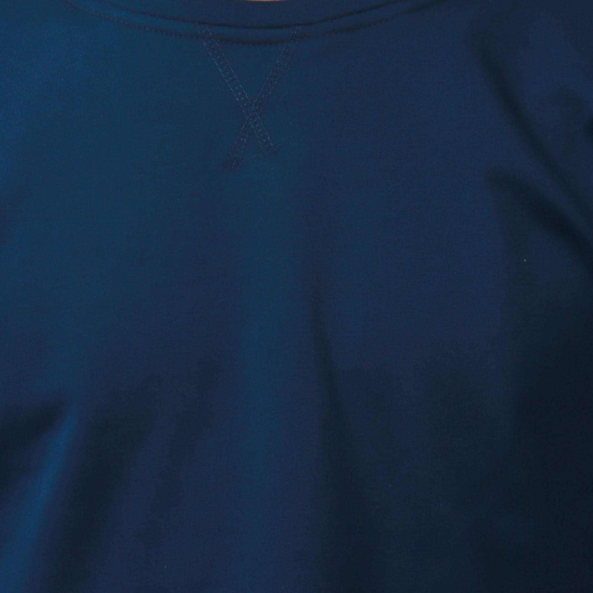 Navy Blue Classic Sweatshirt with a round neck and same fabric rib. V top stitch design on neck.